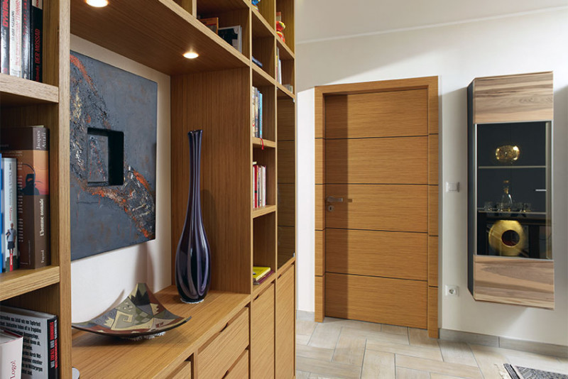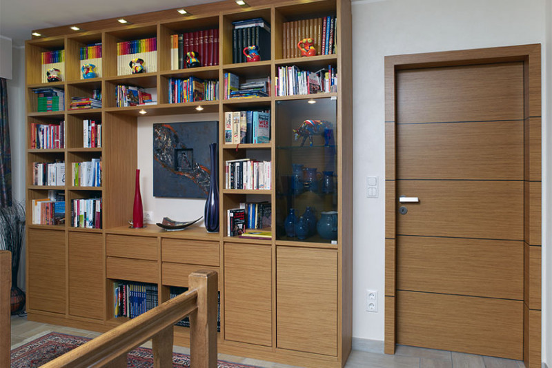 Regalwand und Innentüren in Alpi Teak querfurniert