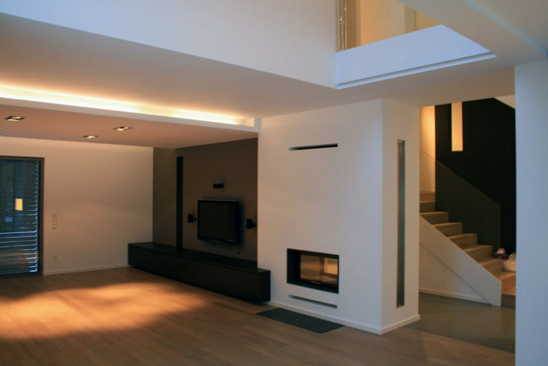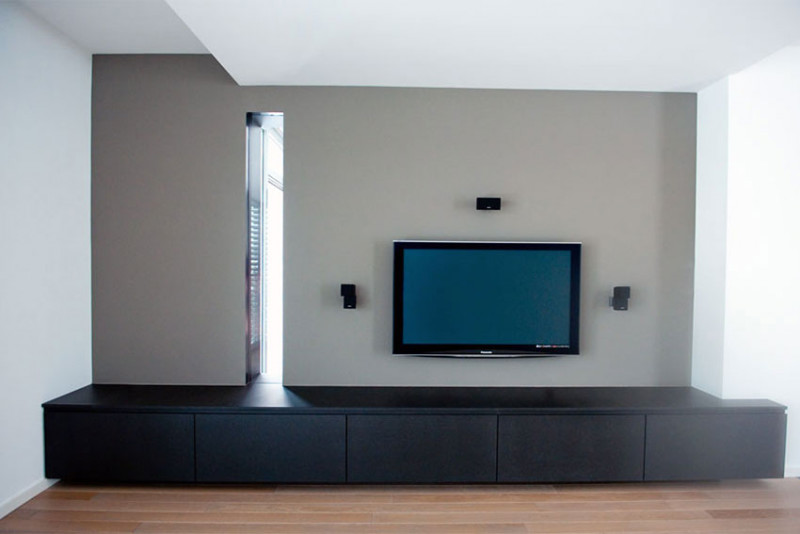 in Flur und Wohnzimmer wurde ein Möbel konstruiert das auf der Wohnzimmerseite als TV/Hifi- und Stauraummöbel genutzt werden kann
