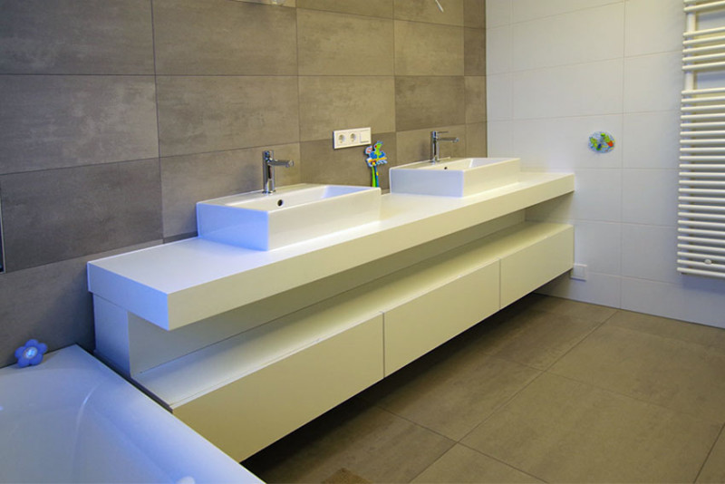 Platte wurde passend zur lackierten Fläche in durchgefärbtem strapazierfähigen HPL belegt
