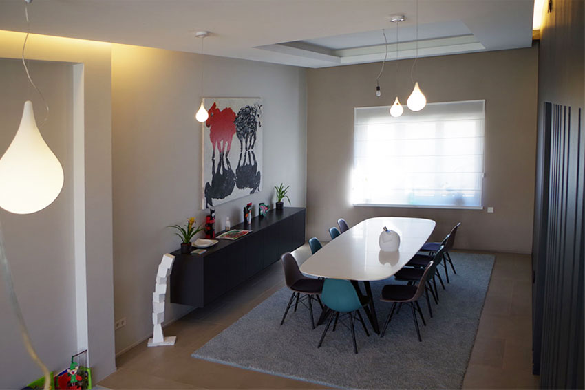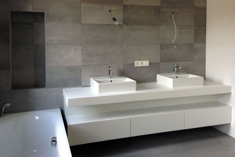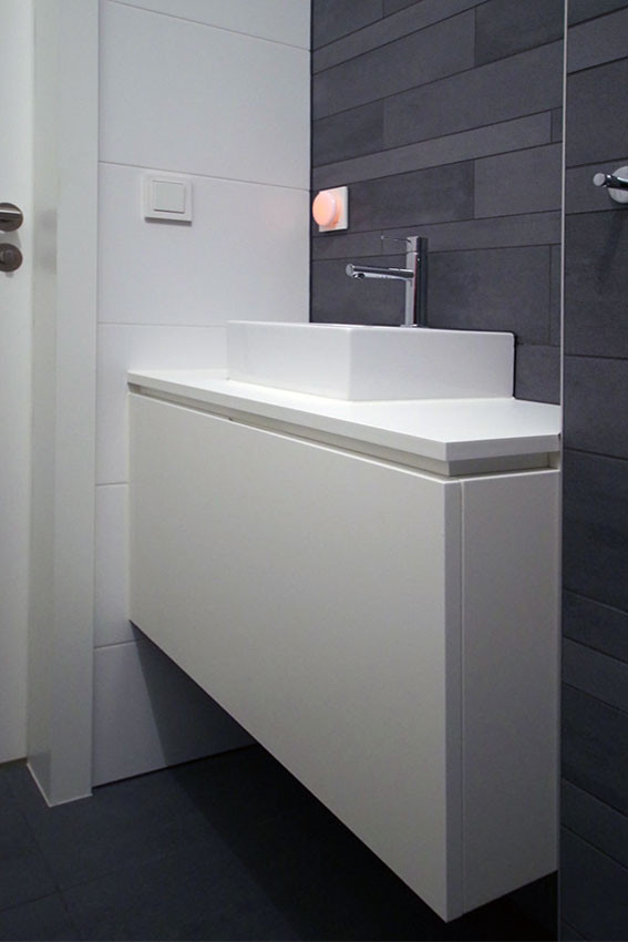 Farbliche Abstimmung der Plattenbeläge und Lackierungen an die Raumfarbe.
