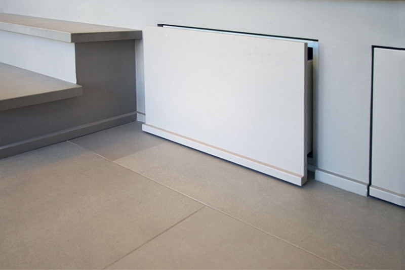 Dieser Schrank ist so konstruiert, dass permanenter Zugang zu den Einstellungsreglern der Fußbodenheizung möglich ist